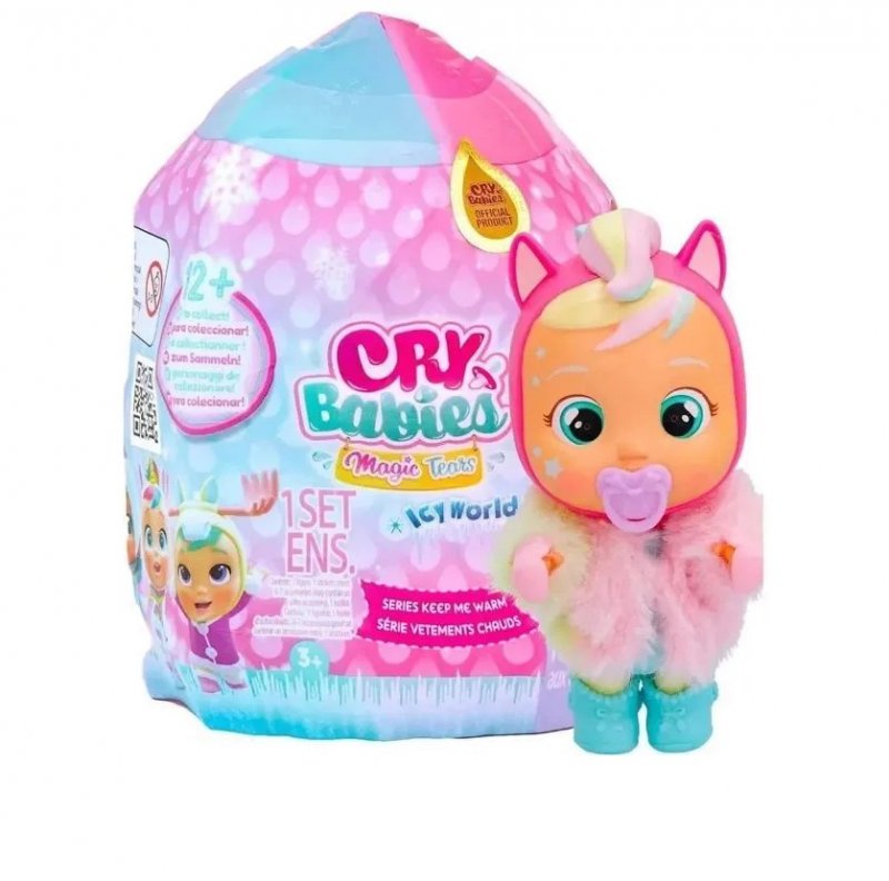 Любите сюрпризы? Найдите их все внутри таинственной упаковки с куклой Cry Babies Icy World! * Внутри упаковки вас ждут мини-кукла Cry Babies в зимнем наряде и 8 сюрпризов-аксессуаров. * В этой серии вам может попасться один из 13 вариантов кукол, включая редкую Кору и ультра-редкую Шану. * У куклы подвижные ручки и ножки. * Пьет из бутылочки и плачет настоящими слезами. * Высота – 13 см.