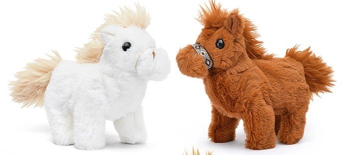 Мягкая плюшевая лошадка для детей забавно двигается, шевелит хвостиком и кричит.