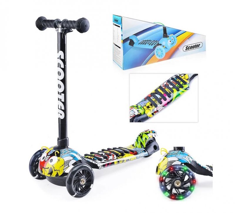 • Самокат трёхколёсный со съёмной рулевой стойкой.