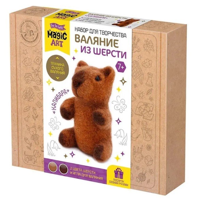 Набор для валяния "Капибара" включает все необходимое для создания симпатичной игрушки в технике сухого валяния.