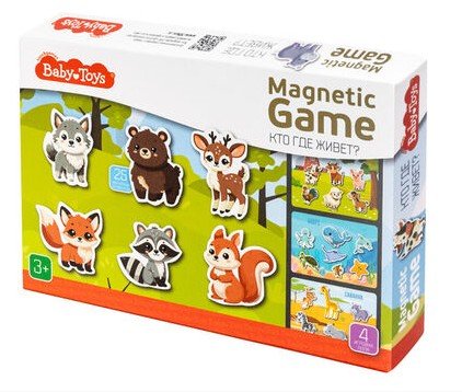 Магнитная игра "Фрукты и овощи" Baby Toys - это развивающая игра для малышей, с которой они узнают о местах обитания разных животных.