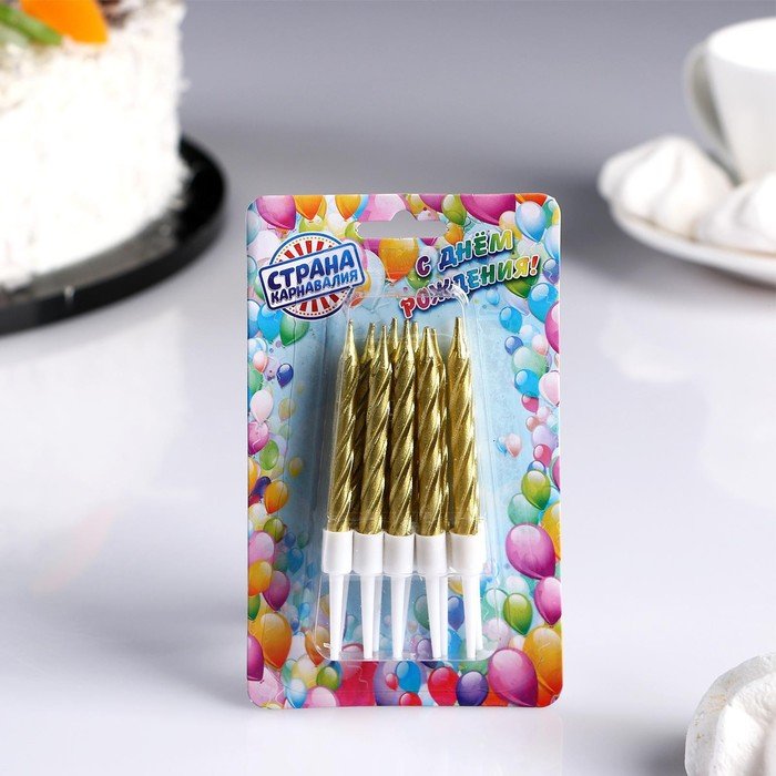 Свечи в торт «Спираль», 10 шт., средние, 5 см, золотой металлик 2919671